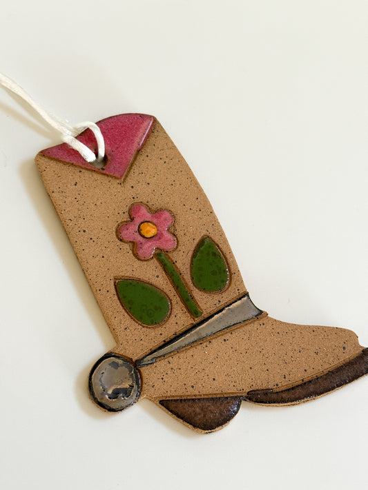 Ceramic Western Boot Ornament (pink flower)