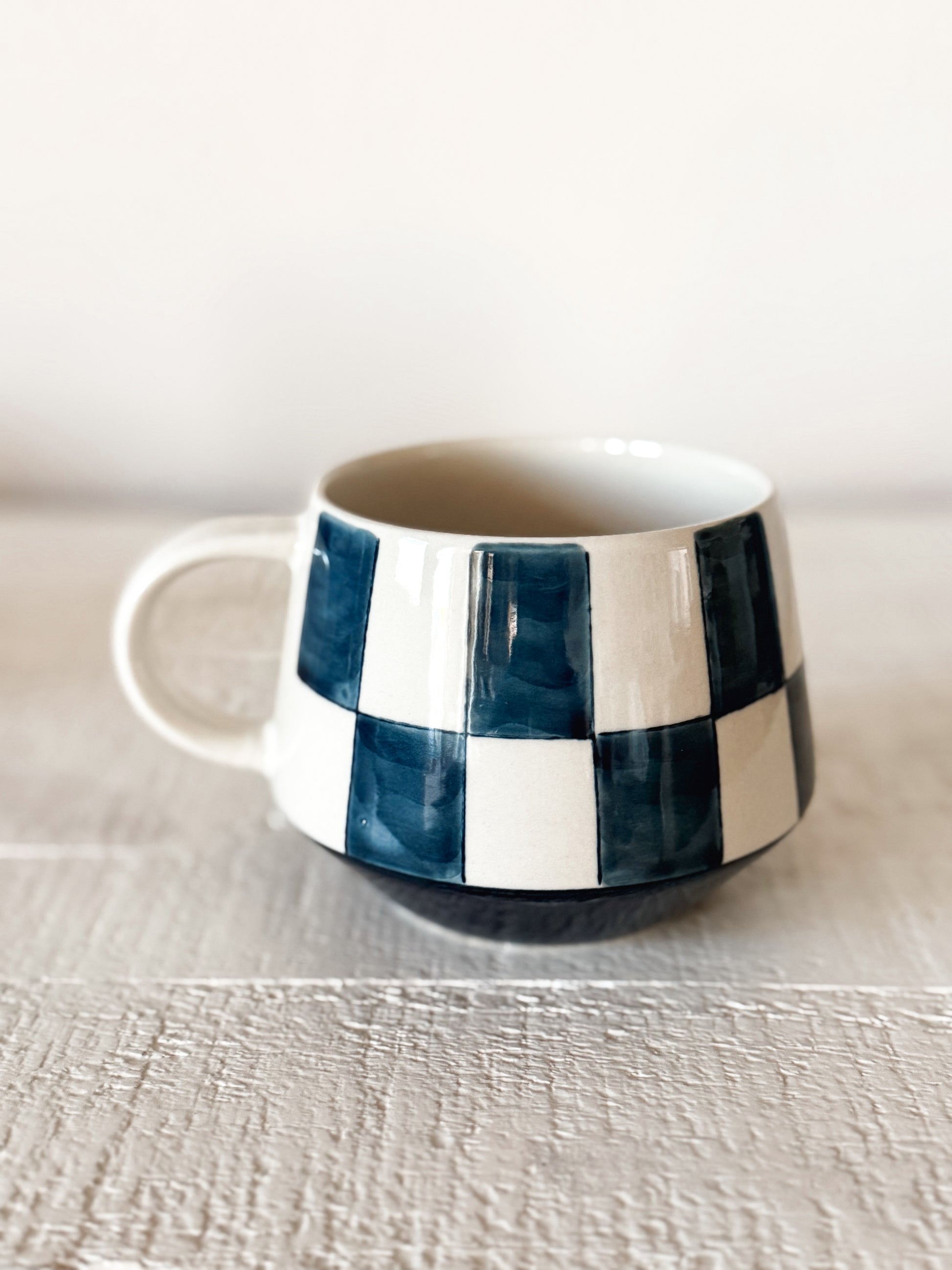 Navy Check Stoneware Mug